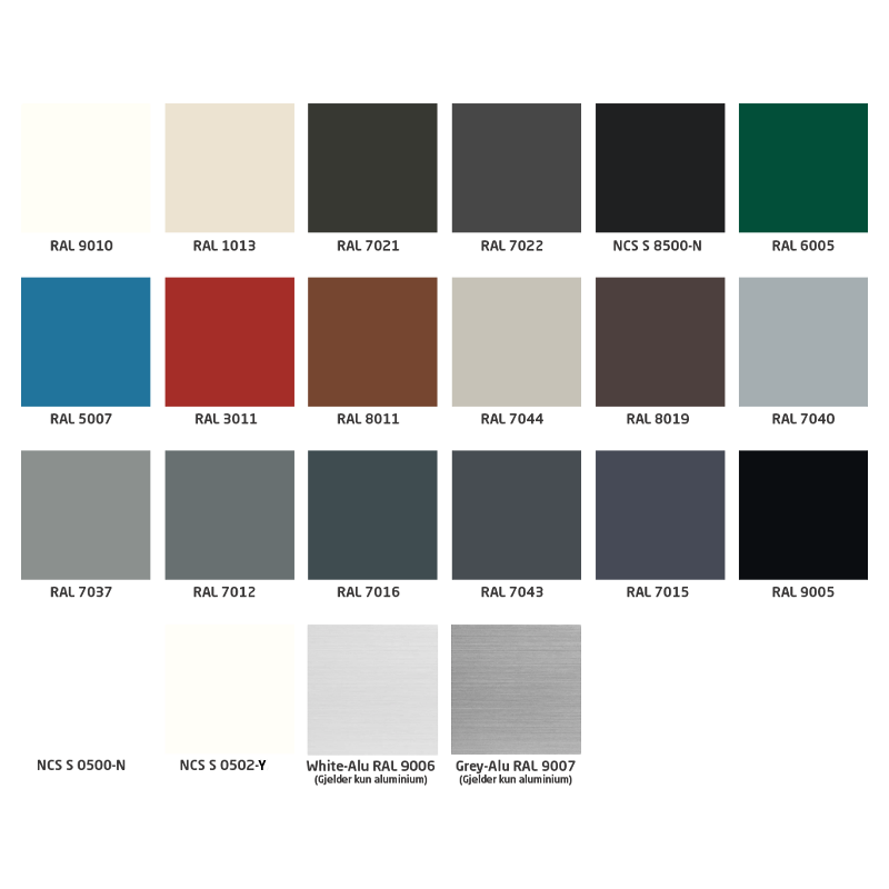 - Utvendig utførelse: Tre, Tre/Aluminium,